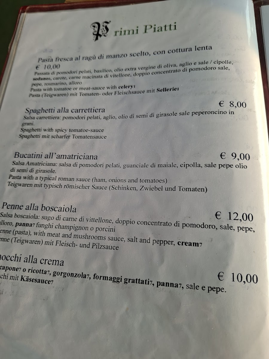 The menu is a celebration of traditional Italian cuisine, showcasing the richness of local flavors and recipes passed down through the family. Reviewers like Vincent Röder have praised the exquisite balance of flavors in dishes like the local sausage pasta, while others like Fred Flintstone revel in the nostalgia of traditional food, paired impeccably with fine local wines, crafted with care by the knowledgeable staff.